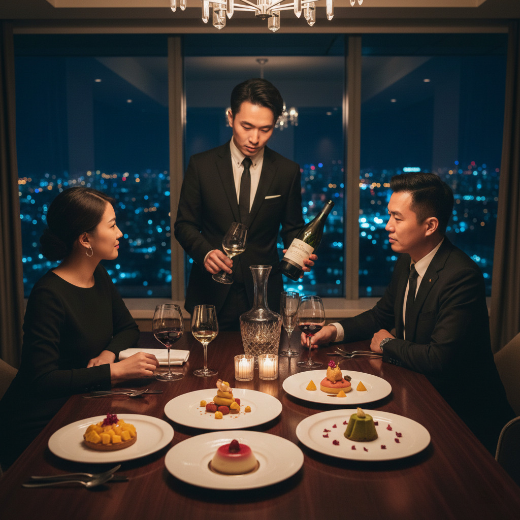 餐酒搭配的藝術: 侍酒師會引導賓客體驗甜點與葡萄酒之間的交互作用,例如酸度較高的甜點可搭配微甜的氣泡酒以平衡口感;而濃郁的巧克力甜點則可與波特酒或貴腐酒產生完美的共鳴。